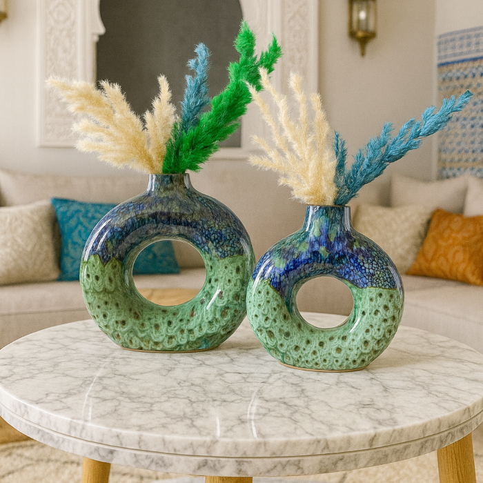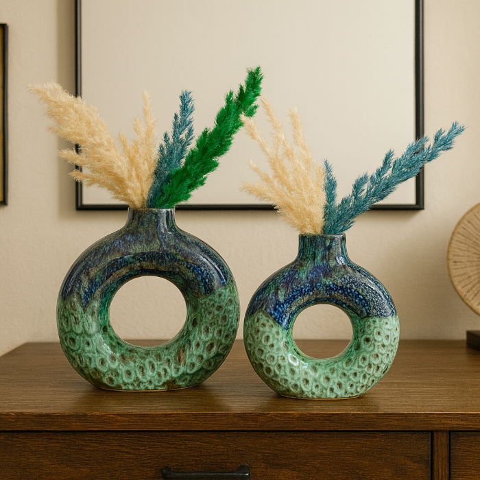 Le Vase Donut Vert Dégradé apporte une touche de fraîcheur et d’élégance à ton intérieur 🌿.